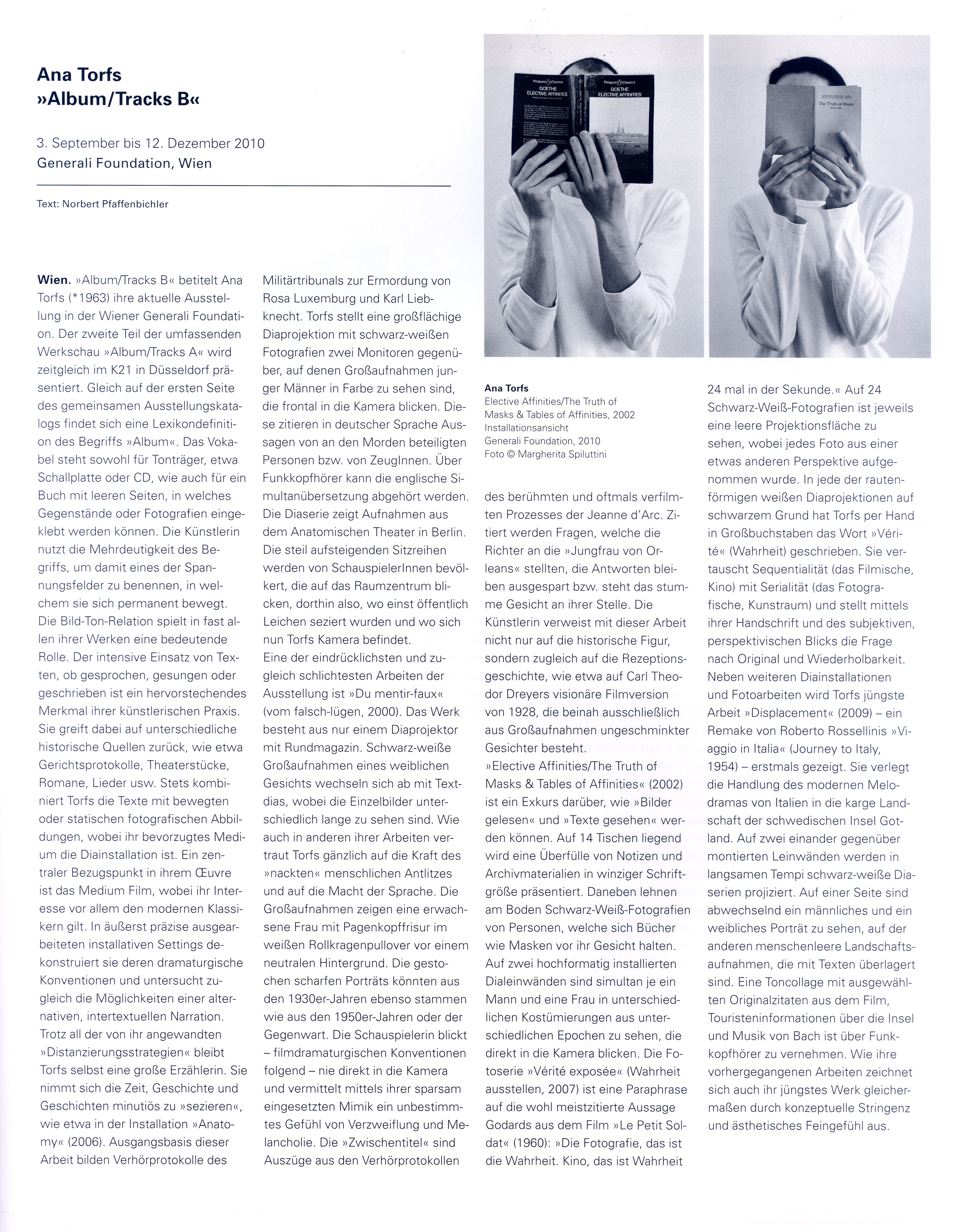 Ana Torfs in conversation with Gabriele Mackert, Never Trust the Artist, Trust the Tale, in: Album/Tracks A+B, 2010