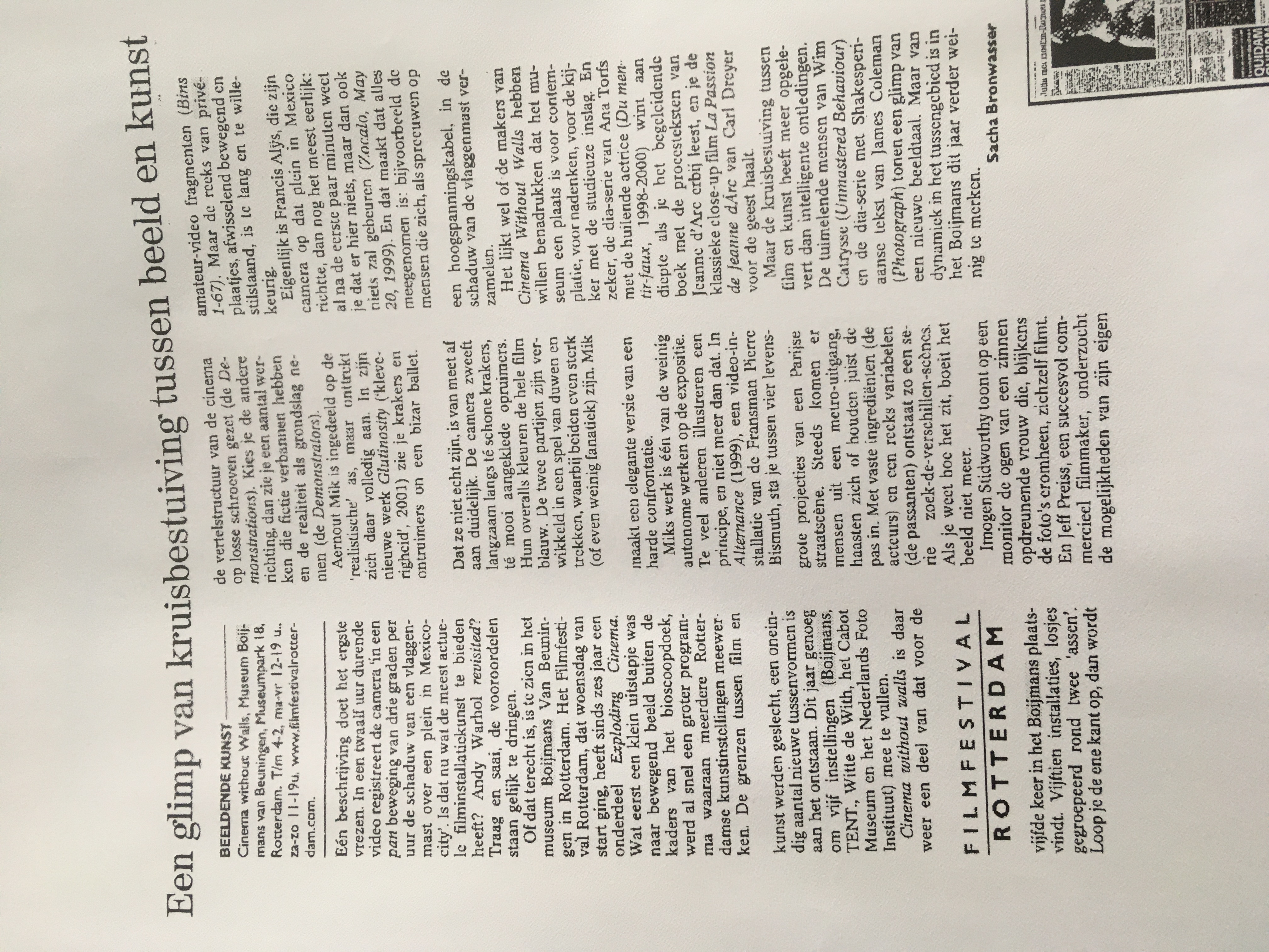 Bronwasser, Sacha, Een glimp van kruisbestuiving tussen beeld en kunst, in:
